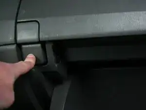 Reinstall the hook on the right side of the glove box by pushing it back over the grey tabs.