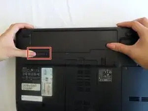 Flip your laptop on its back so the battery is facing up and the hinges are facing away from you.