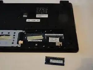 The RAM card should raise slightly at the unattached edge.