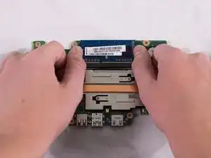 Gently push the two metal clips that hold the RAM to the side, as indicated by the picture.
