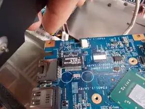 Remove all three 1.2mm screws that attach the fan to the motherboard using a Phillips #00 screwdriver.