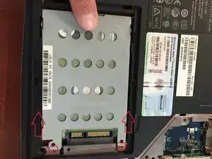 We insert the hard drive in place and we push it to our right to fit it correctly. We then screw the 2 screws to the right.