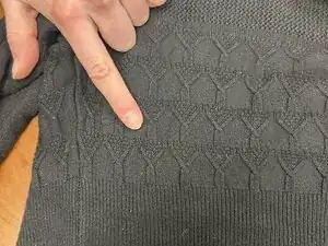Pull the needle through the sweater at the site of the snag, ensuring that the needle is facing the inside of the sweater.