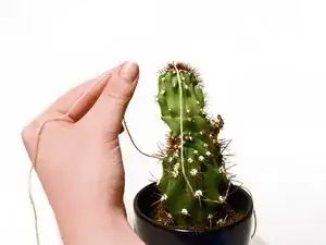 Wind the string around your cactus carefully. Make sure to cross the string over the other, creating a perpendicular line.