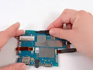 Release the tab on the large ZIF connector on the right side of the motherboard by lifting the tab with a spudger.