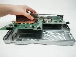 Remove the power supply by lifting it off the motherboard, while leaving its cord attached.