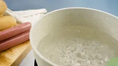 1Bring a large pot of water to a rolling boil. Choose a pot that's large enough to fit all the hot dogs you want to boil. Leave a few inches of room at the top of the pot so it won't boil over when you add the dogs.