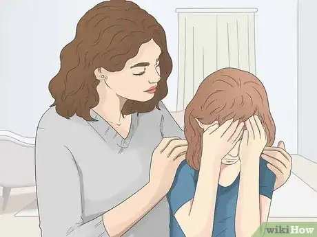 Community AnswerTell the child it is going to be okay and try to calm her down by breathing deeply and slowly with her.