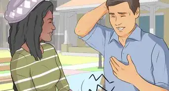 The key to perfecting your fake laugh is getting the right sound and facial expression. Make a quick giggle instead of a slower or deeper laugh, since this will sound more realistic. Try to imitate how other people laugh. Laughing is often contagious, so you should find it easier to laugh when other people around you are laughing. You can also think of something else that’s funny to help you laugh. When you finish laughing, keep smiling for a few seconds so you don’t just suddenly stop. Don’t overdo it if you don’t find something funny. Smiling and letting out a few quick breaths can often seem more realistic than a loud, over-the-top laugh. For more tips, including how to explain why you weren’t laughing when you don’t get a joke, read on!