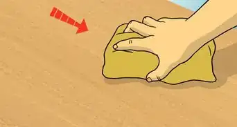4Fill in the scratch. Apply a small amount of wood filler that is similar to the color of your hardwood floor, to your pointer finger. Use your finger to work the wood filler into the scratch or gouge, spreading the filler in all directions to remove air bubbles.[16] You can be generous with the wood filler, because excess filler will be removed later.