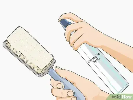 3Apply detangler spray to your brush instead of the dog. Choose a detangler spray intended for dogs. Since it’s easy to over-saturate a maltipoo’s coat with the spray, try spraying your brush instead. Re-spray the brush every few minutes as needed.[3]