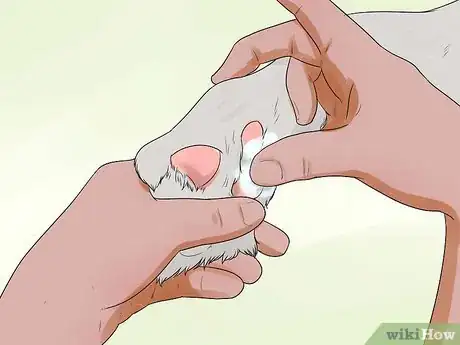 3Rub the paws. Once the nails are cut and filed, you should rub some vaseline or paw moisturizer to help hydrate his paws. This also gives his paws a break after the stressful process of having his nails clipped. Repeat this on every paw.