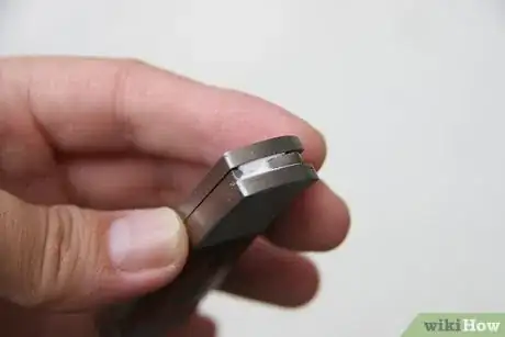 1Inspect the knife for a screw at the base of the blade. It may be under the clip. Depending on the knife, you may need to remove the clip to access the screw.