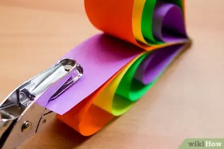 4Staple the strips together. Make sure the bottoms of all the strips are evenly lined up with one another. Put a single staple through the bottom to hold the strips together.