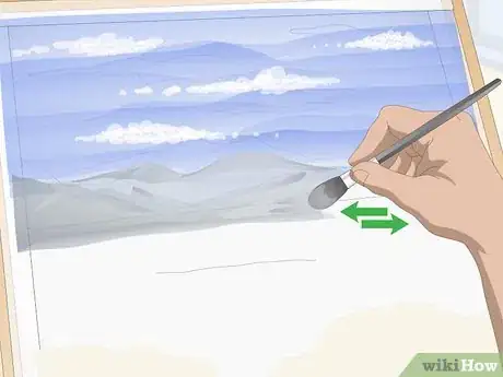 - If you'd like slight blurring or bleeding between the washes and details, paint the details while the washes are still wet. For example, if you're painting sandy dunes in the middle ground, work while the sky is still wet so they blur into each other.