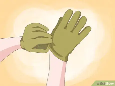 1Wear gardening gloves whenever you handle elephant ear bulbs. Raw elephant ear bulbs contain oxalates, which can cause burning irritation if they come in contact with sensitive skin or if they’re swallowed. Protect your hands with gloves to prevent transferring any toxins to other areas and avoid touching your face and eyes while you’re planting your bulbs.[1]