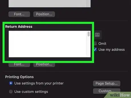 4Enter a return address. Type the return address as you'd like it to appear in the "Return address" box.