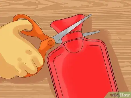 2Cut the hot water bottle open to make two flat sides.
