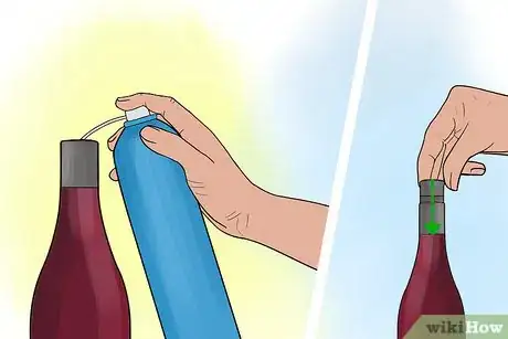 5Replace the oxygen with an inert gas aerosol. To use an aerosol product, insert the extension tube into the bottle, spray the gas, then quickly replace the cork. Aerosol preservation products replace the oxygen in a bottle with an inert gas, such as argon.[11]