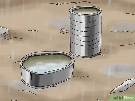 1Collect water from rain, snow, or other precipitation. Set out an open container to catch rain, snow, hail, or dew. Choose a spot that is clear of tall trees that may obstruct the fall of precipitation. Large leaves can also be used to collect water and funnel it into another container.[16]