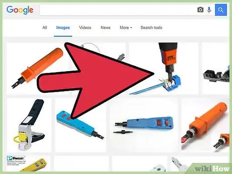 6Terminate each wire. After all the wires are in the correct spot and double checked to make sure as little amount of exposed wires will be left as possible, use the punch down tool with the 110 blade and terminate each wire individually. The 110 blade will fully cover the wire connector on the jack. Push down until the tool clicks and cuts the end of the wire off. Repeat this step if the wire was not fully cut.