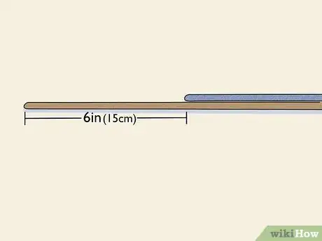 1Lay the 2 lines parallel so the ends overlap by 6 in (15 cm). Place the 2 lines so they run parallel with the ends facing in opposite directions. Overlap the ends by at least 6 in (15 cm) to give yourself enough line to tie the knot with.