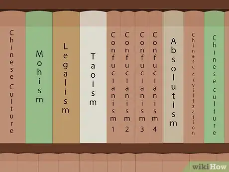 6Build up a library's worth of books on: Taoism, Confucianism, Legalism, Mohism, Absolutism, Chinese civilization, Chinese culture, Ancestral worship and local gods, the six warring kingdoms and finally on Lao-Tzu himself. Make sure you have a variety of books on each topic, ensuring that you have access to well-rounded opinions and many different angles.
