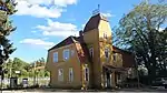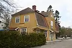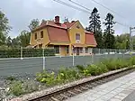 The station was opened to traffic in 1901 with the inauguration of the line. The station building, designed by architect Ferdinand Boberg,[3] is the best preserved of the Nynäs Line's original station buildings, however is no longer part of the railway,[4] and is now a private house.[5] In 2008, the station's platform was extended to accommodate full-length SL X60 trains. At the same time, a new entrance was built towards Nyblevägen in the south for a better connection to the new bus terminal, which was inaugurated at the end of 2009.