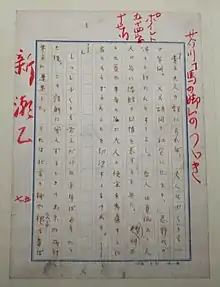 - ↑ Keene, Donald (1984). Dawn to the West: Japanese Literature of the Modern Era. New York: Holt, Rinehart and Winston. pp. 558–562. ISBN 978-0-03-062814-6.