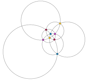 1-planar graphs were first studied by Ringel (1965), who showed that they can be colored with at most seven colors.[1] Later, the precise number of colors needed to color these graphs, in the worst case, was shown to be six.[2] The example of the complete graph K6, which is 1-planar, shows that 1-planar graphs may sometimes require six colors. However, the proof that six colors are always enough is more complicated.