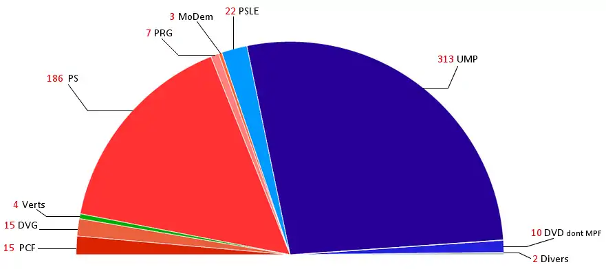 | UMP Group (Union pour un Mouvement Populaire) | Jean-François Copé | UMP, DVD | 314 | 6 | 320 | |