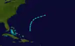 The barque Southerney observed a tropical storm on October 20,[1] while located about 460 miles (740 km) north-northwest of San Juan, Puerto Rico. The storm strengthened slowly while heading northward, until peaking with winds of 70 mph (110 km/h) on October 21. The storm then began to re-curve northeastward. Early on October 22, it passed near Bermuda,[2] though no impact was reported on the island.[1] Several hours later, this system was last noted about 365 miles (587 km) east-northeast of Bermuda.[2]