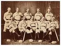 The Dark Blues, with future Hall of Famer Candy Cummings, had the best pitching staff in baseball. Cummings won 35 games, and the 19-year-old Tommy Bond finished second in league ERA at 1.56.