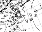 A tropical depression formed about 140 mi (230 km) east-southeast of Ocean City, Maryland, early on September 2. The depression drifted southward and reached tropical storm intensity later that day.[5] Based on observations from ships on September 3, the cyclone peaked with maximum sustained winds of 50 mph (85 km/h) and a minimum barometric pressure of 1,007 mbar (29.7 inHg).[4] The storm then began moving southwestward at a faster pace. Late on September 5, the cyclone weakened to a tropical depression and curved west-southwestward. Shortly after 06:00 UTC on September 6, the system made landfall near Midway, Georgia, with winds of 35 mph (55 km/h). About 12 hours later, the depression dissipated over southwest Georgia.[5] The strongest wind speed associated with the storm was 37 mph (60 km/h) in Charleston, South Carolina.[4]