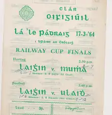 17 March 1964 Final Leinster 3-07 - 2-09 Munster Croke Park, Dublin