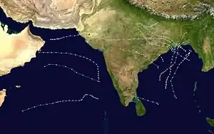The 1970 North Indian Ocean cyclone season had no bounds, but tropical cyclones in the North Indian Ocean tend to form between April and December, with peaks in May and November. The 1970 season saw a total of seven cyclonic storms, of which three developed into severe cyclonic storms. The Bay of Bengal was more active than the Arabian Sea during 1970, with all of the three severe cyclonic storms in the season forming there. Unusually, none of the storms in the Arabian Sea made landfall this year. The most significant storm of the season was the Bhola cyclone, which formed in the Bay of Bengal and hit Bangladesh on November 12. The storm killed at least 500,000, making it the deadliest tropical cyclone in recorded history.[1] The season was also the deadliest tropical cyclone season globally, with 500,805 fatalities, mostly due to the aforementioned Bhola cyclone.
