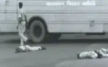 On 30 September, while the negotiations with the JRA hijackers were ongoing, a mutiny occurred in the city of Bogra. Enlisted soldiers of the 22 East Bengal Regiment killed two lieutenants and took the 93 Brigade Commander and several of his officers as hostages.[1] The mutineers tried to incite soldiers of the 4 Horse, an armoured unit, but failed to garner their support. Subsequently, the mutineers looted several banks and shops in Bogra and released 17 former soldiers from the prison, who were imprisoned for their role in the 1976 Bogra mutiny.[1]