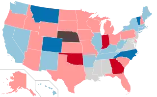 The Democrats also regained the title of holding the most legislative seats across the country, winning one more seat than the Republicans.[5] Republicans won a trifecta in Georgia for the first time ever.