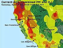 - ↑ "California Air Quality". Air Now. August 7, 2018. Retrieved August 7, 2018.