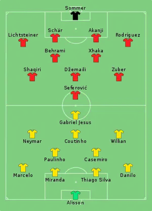 - 1 2 3 "Tactical Line-up – Group E – Brazil v Switzerland" (PDF). FIFA.com. Fédération Internationale de Football Association. 17 June 2018. Retrieved 17 June 2018.