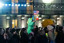 Near the end of his speech, immediately before he said his farewells, Biden referred to Putin when he stated, "For God's sake, this man cannot remain in power."[23] This statement appeared to conflict with previously established U.S. policy, which had not advocated for a regime change.[10][23][lower-alpha 3] A Biden administration official stated that this remark was not part of the prepared speech.[10][lower-alpha 4] Minutes after the speech ended, the administration had already begun walking back the president's words.[23] One of Biden's officials stated that Biden had meant that "Putin cannot be allowed to exercise power over his neighbors or the region", and that Biden was not referring to Putin's exercise of power in Russia.[12][23]