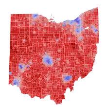 Vance won by a 6.1 point margin, which was significantly closer than all other concurrently held elections for statewide offices in Ohio won by Republicans.[2][3] Despite his defeat, Ryan flipped four counties carried by Portman in re-election in 2016: Summit, Montgomery, Hamilton, and Lorain, the latter of which Trump won in 2020. However, Vance scored wins in Ryan's home county of Trumbull and the industrial-based Mahoning County that contains much of Youngstown. Both counties were represented by Ryan in his congressional district.