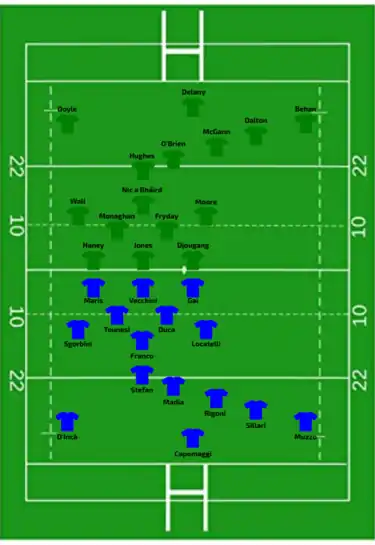 Try: Stefan 29' c D'Incà (2) 42' c, 78' c Con: Sillari (3/3) 30', 43', 79' Pen: Sillari (1/1) 64' | Report | Try: Penalty try 68' |