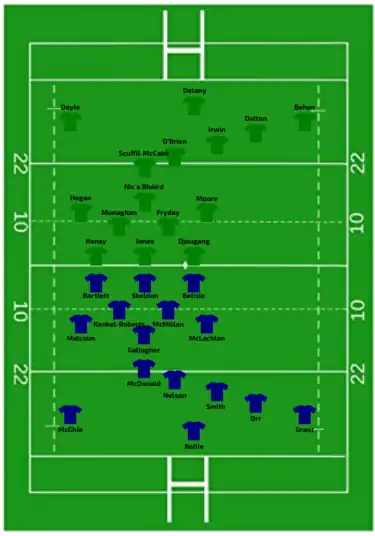 - Kate Williams (Wales), Natasja Behan, Méabh Deely, Sadhbh McGrath and Niamh O'Dowd (all Ireland) made their international debuts.[8]
