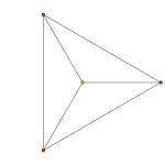 The A4 Coxeter plane projects the 5-cell into a regular pentagon and pentagram. The A3 Coxeter plane projection of the 5-cell is that of a square pyramid. The A2 Coxeter plane projection of the regular 5-cell is that of a triangular bipyramid (two tetrahedra joined face-to-face) with the two opposite vertices centered.