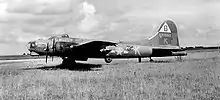 Lockheed/Vega B-17G-10-VE Flying Fortress, AAF Ser No. 42-39958 of the 92d Bomb Group. This aircraft suffered severe damage during a mission to Hamburg Germany on 4 November 1944 attacking the Harburg oil complex. It was written off after it landed safely.