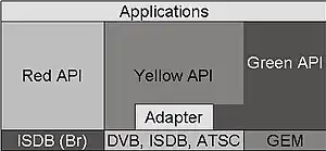 - ↑ Ginga organization Brazilian website in English "Ginga Digital TV Middleware Specification". Archived from the original on 2009-05-18. Retrieved 2009-05-12.