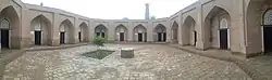 The courtyard is square (31.5x28.25 meters), and the corners are decorated with a bouquet of flowers - a minaret.[3] Through a wide arched porch in the style of a head, it leads to the 3-domed mionsaray, and through it to the courtyard. The courtyard (18.9x14.0 meters) is surrounded by cells. The roof of the cells is covered with a balkhi dome. The domed mosque on the south side is connected to the Mion Palace. The size of the classrooms is 4.25x4.25 meters. The courtyard is entered from the west through a narrow passage. Currently, the madrasah houses the exposition "Museum of Nature".