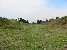 This ancient stadium was located in the so-called 'Proasteion' (sacred grove) of the Graeco-Roman city of Nikopolis. Together with the nearby gymnasium, theatre and hippodrome it was the location of the famous Actian Games.[5][6] These games, which featured athletic, equestrian and musical events,[7] were first held in 27 BCE to celebrate the victory of the first Roman emperor Augustus over his adversaries, Marc Antony and his Egyptian wife Cleopatra. They were held every four years up to the mid-3rd century CE. Dating from just after the city's foundation, the ancient stadium of Nikopolis has two semicircular ends (sphendones), typical of the amphitheatre type that was in use during the first 200 years of the principate. The stadiums of ancient Laodikeia (near Pamukkale, Turkey) and Aphrodisias (Geyre, Turkey) have a similar architecture.