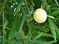 The leaves are simple and flat. The phyllotaxis or leaf arrangement is usually spiral but may be opposite on young plants.[8] The leaves are generally lanceolate in shape and coriaceous in texture. They have a single visible midrib. Stomata are found on both surfaces of the leaf.[8][6]